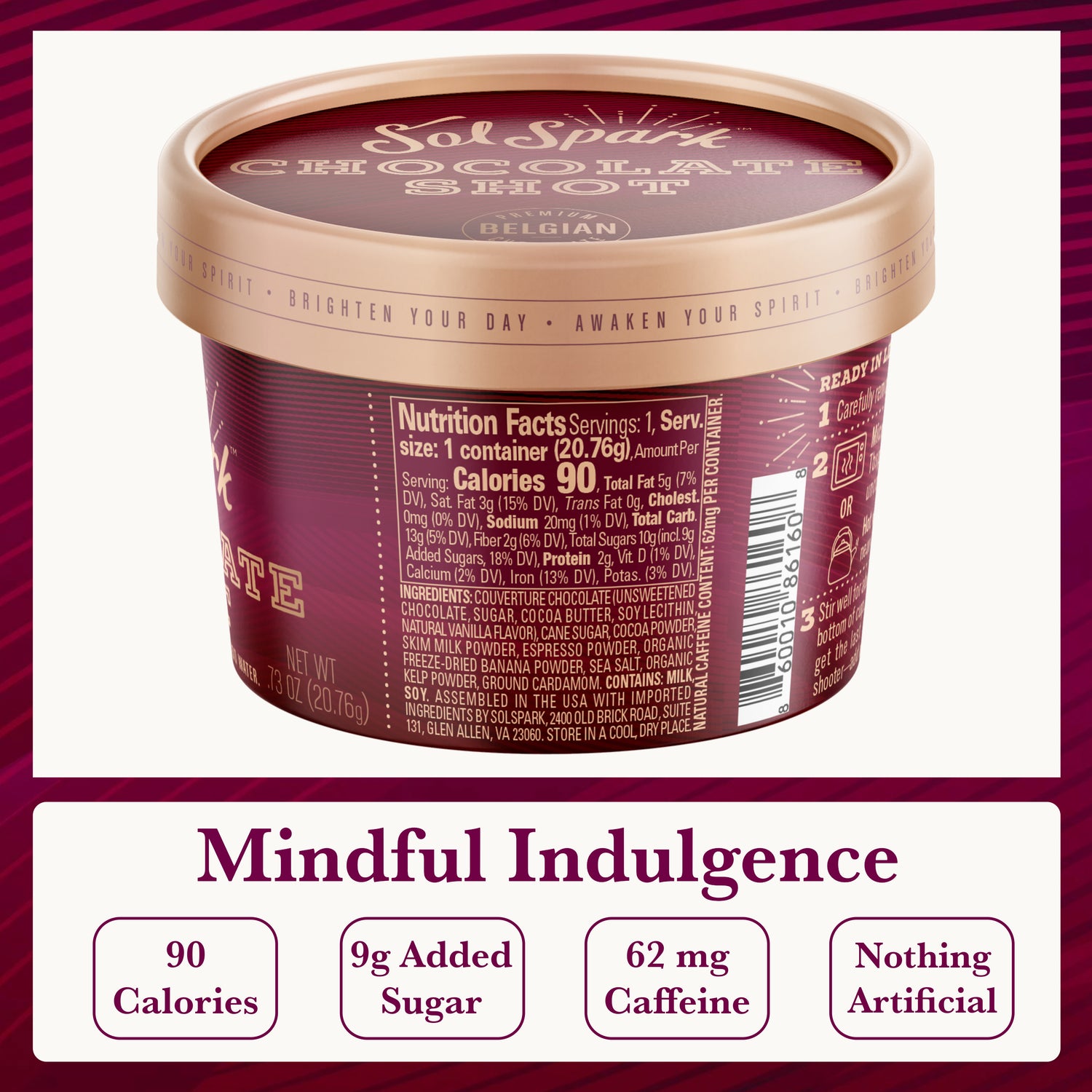 And with only 90 calories per serving, SolSpark Chocolate Shot offers guilt-free pleasure. It's not just a beverage; it's a daily ritual, a moment of joy that transforms your day, a small luxury that makes a big difference.