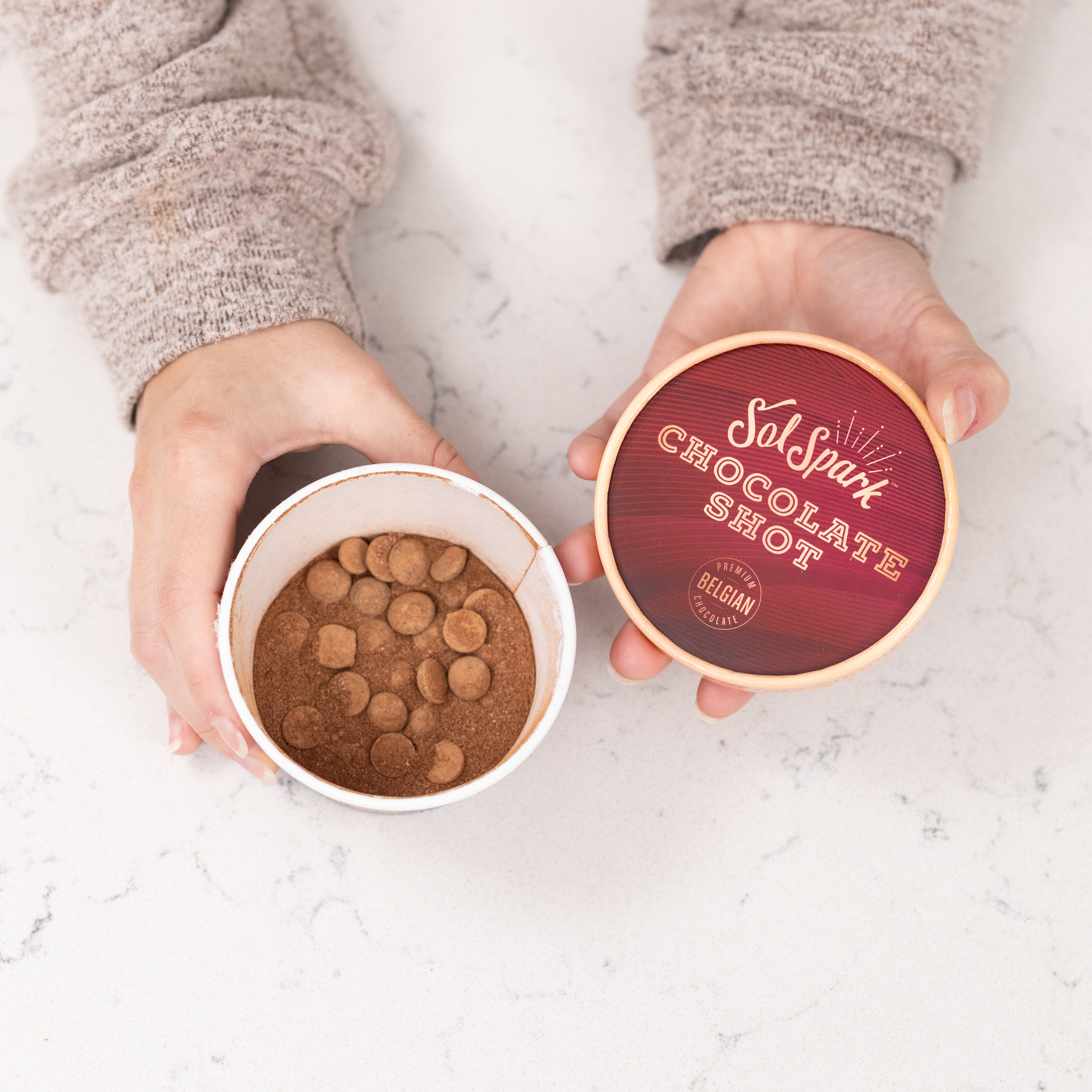 SolSpark Chocolate Shot uses a premier high-fat, natural cocoa powder from the Netherlands.